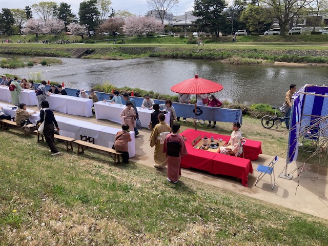 第52回「鴨川茶店」を4月4日(土)5日(日)午前11時から午後3時30分まで、鴨川東側北山大橋から北大路間の「なからぎの道」で京都鴨川ライオンズクラブ様との共催で開催致しました。